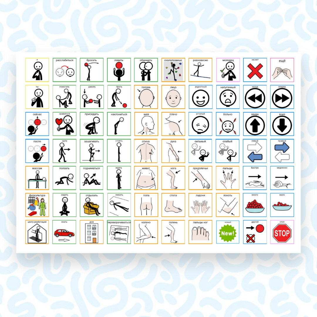Помните: чтобы создать пространство для общения, у пользователя АДК должно быть индивидуальное средство. Если его ещё нет, отличным дополнением к этой доске станет расширенный базовый словарь и таблица с эмоциями и впечатлениями.